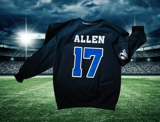 Black unisex/mens sizing in crewneck with allenback design on it!
