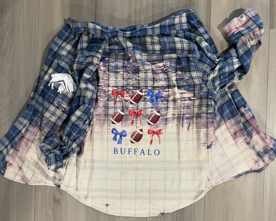BLEACHED BACK FLANNEL "BUFFALO BOWS" in LIGHT BLUE in mens/unisex sizing