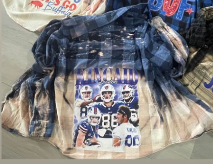 BLEACHED BACK FLANNEL "KINCAID VINTAGE" BLUE with detail on pocket in front in mens and unisex sizing