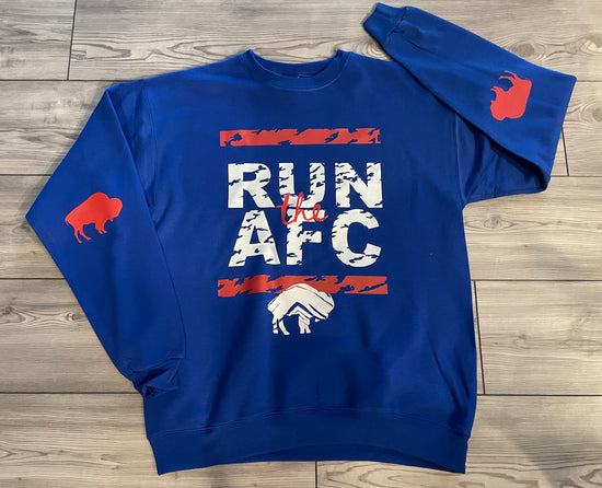 Unisex Sizing -- Blue Crewneck Sweatshirt with RUN THE AFC on it ! So Cute!