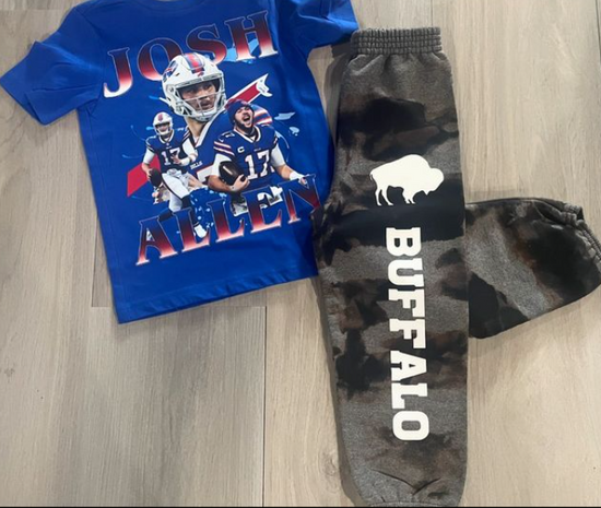 Not a basic bleach's Black Bleached Buffalo Joggers and Blue Josh A Tee!