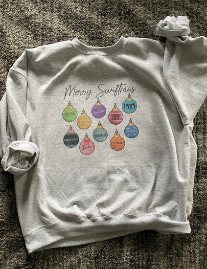 Merry Swiftmas Crewneck with the ornaments representing all the albums ✨