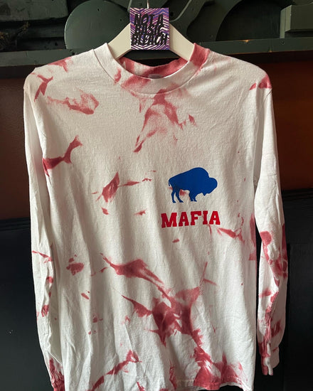 Red spray dye longsleeve with front with w cute mafia and buffalo on it && back with a 17 and ALLEN on it!